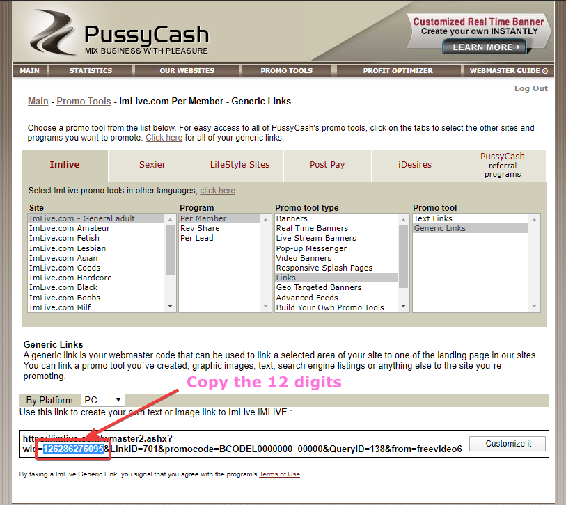Para convertirse en afiliado de ImLive, debe tener una cuenta en su programa de afiliados en PussyCash.com.
